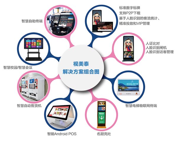 視美泰的使命“讓帶屏的智慧設備無處不在,讓機器更好的為人類服務,讓萬物智慧互聯”其實可以這樣理解:讓帶屏的智慧設備無處不在,這是水平視角,強調智慧顯示產業的廣度,通過視美泰提供的硬件+系統這個基礎平臺的開放和鏈接能力和不斷完善的解決方案生態鏈,幫助智慧顯示產業從智慧標牌開始完成交通、醫療、教育、零售、安防、商圈、金融等市場的智慧顯示設備的覆蓋或者說是升級;讓機器更好地為人類服務,這是垂直視角,強調智慧顯示產業的深度,通過視美泰的AI賦能,讓產業中各個市場無處不在的智慧顯示設備,更加人性化,用戶擁有更好的體驗;最后通過水平覆蓋和垂直賦能,實現萬物智慧互聯。