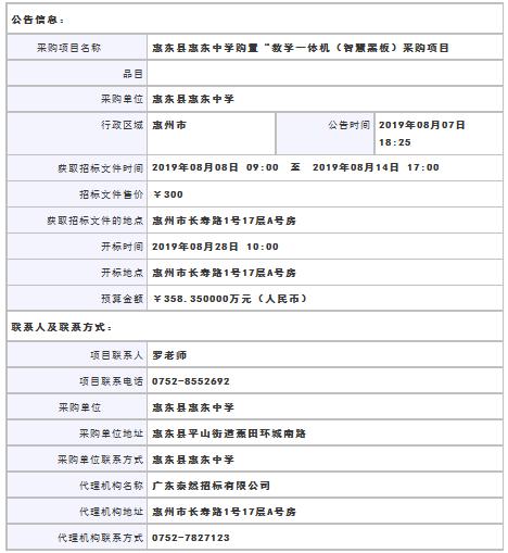 惠東縣惠東中學購置“教學一體機(智慧黑板)采購項目
