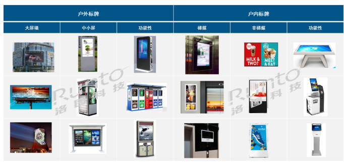 戶(hù)內(nèi)產(chǎn)品多指梯媒顯示、非梯媒的壁掛式、立式、臥式等顯示產(chǎn)品、以及功能性自助設(shè)備(如繳費(fèi)機(jī)、互動(dòng)營(yíng)銷(xiāo)桌、導(dǎo)覽查詢(xún)等自助設(shè)備)。