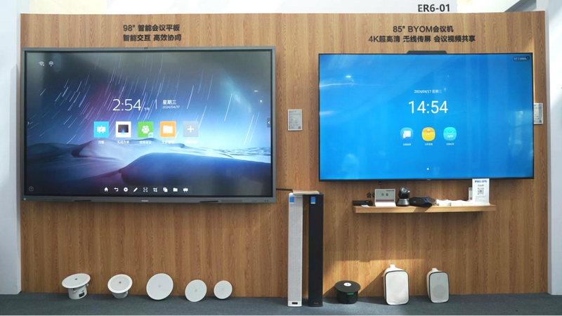 在企業辦公領域,飛利浦通過創新化的產品,為全球500強企業、中國500強企業以及諸多知名企業進行服務。本次帶來的方案,飛利浦推出85″BYOM會議機、智能會議平板、會議門牌、會議桌牌等產品,搭載IWB OS白板系統,實現軟硬件協同,打造企業數字化會議室解決方案。